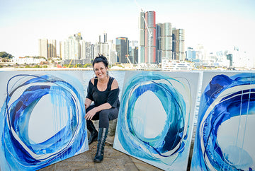 A gestural action painter, Lara’s work is produced in an Abstract Expressionist style that explores developed experimental techniques and processes. Lara builds up each work using various media, including archival Ink, acrylic paint, pastel & oil stick, creating depth through elegant transparent layers that reveal sumptuous hidden dioramas. The Contemporary Luxe body of work focuses on the tonal combinations of rich and luscious colour and the more straightforward considered form of the fluid organic circle, influenced in part by our Australian culture – an Island Continent surrounded by water.
