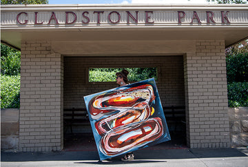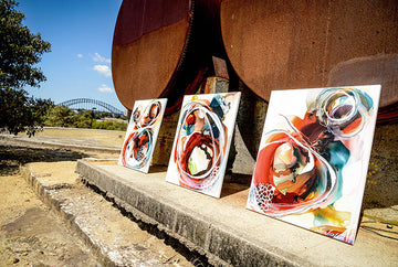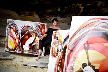 Lara is an action painter, and her medium becomes an extension of her body, echoing my movement and emotional state. These works were created over 12 months within her Hunters Hill Residency within a purpose-built art studio overlooking the magnificent Lane Cover River and the Great North Walk.