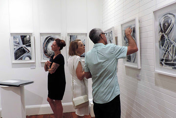 Tingle is Lara’s fifth large scale series of work and includes over 20 mixed media works on canvas and art paper. She is working expressively, almost automatically applying layers of line, form and gradated tone in gestures.